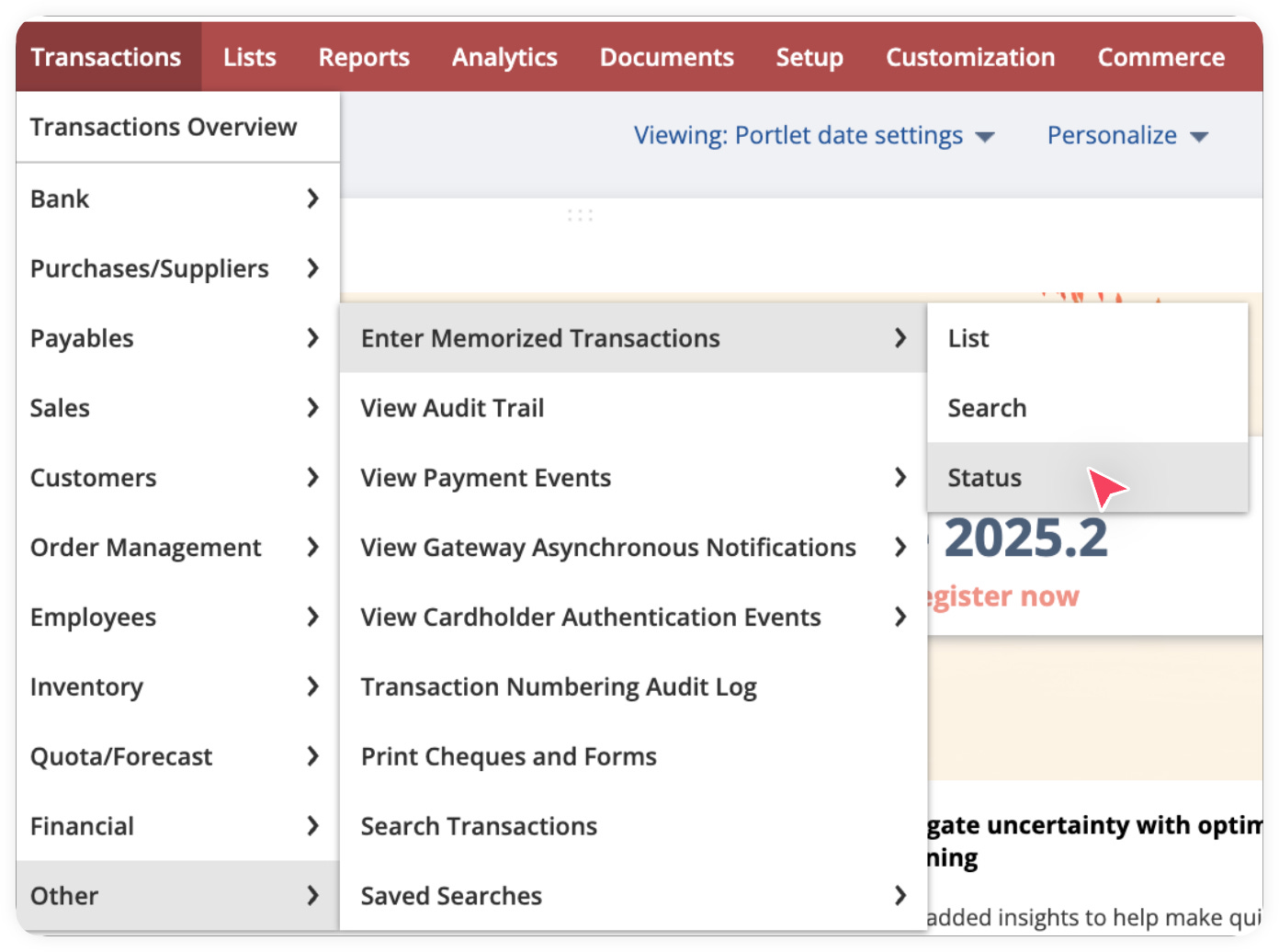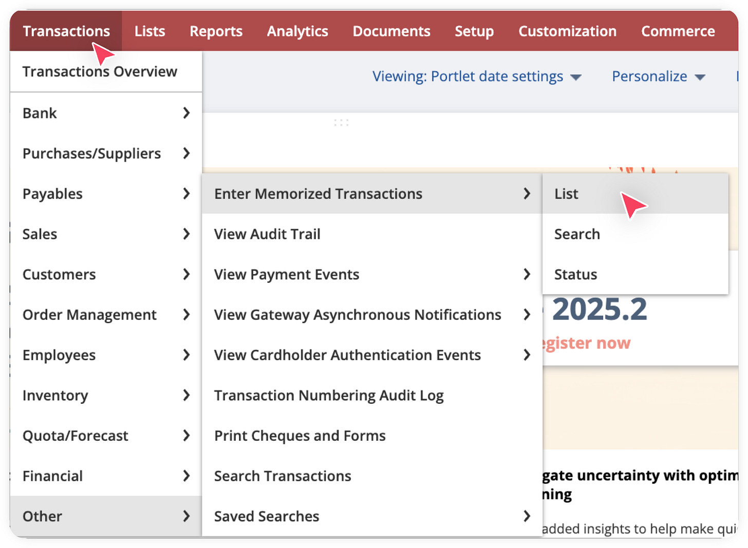 Automating Recurring transactions with Memorized Transactions in NetSuite