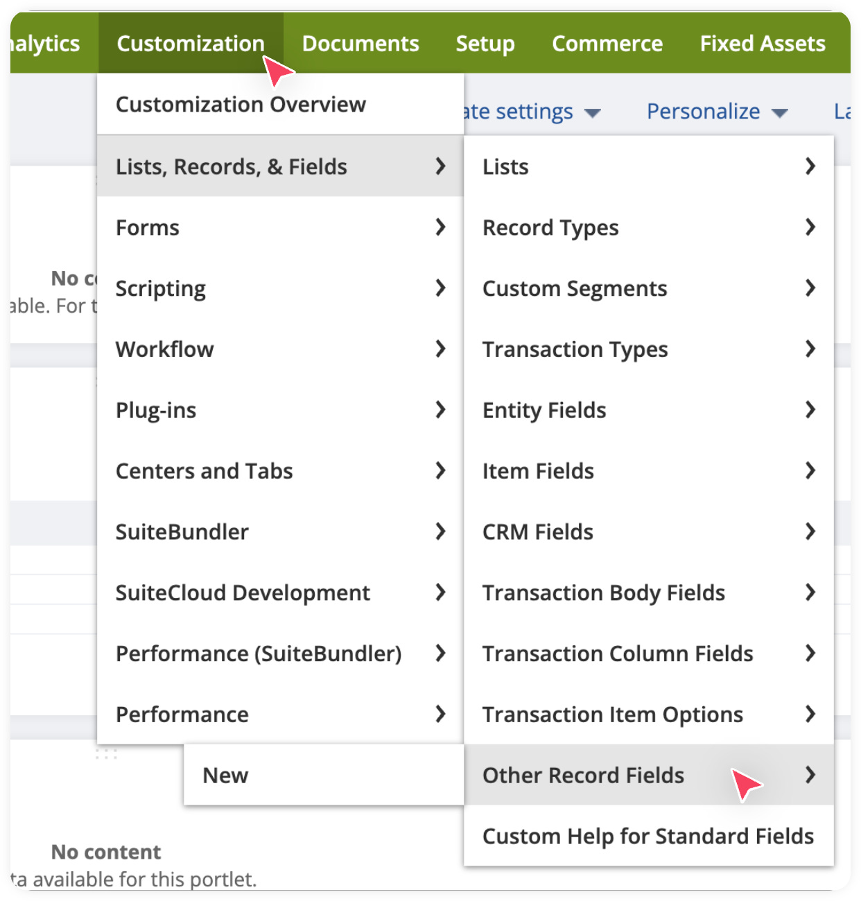 In your NetSuite, Go to Customization > List, Records, & Fields > Other Record Fields > New.