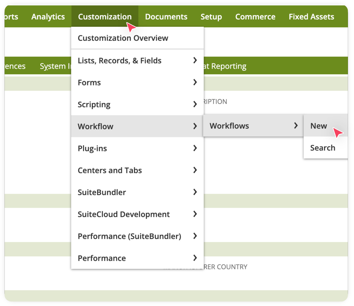 In your NetSuite account, Go to Customizations > Workflows > New.