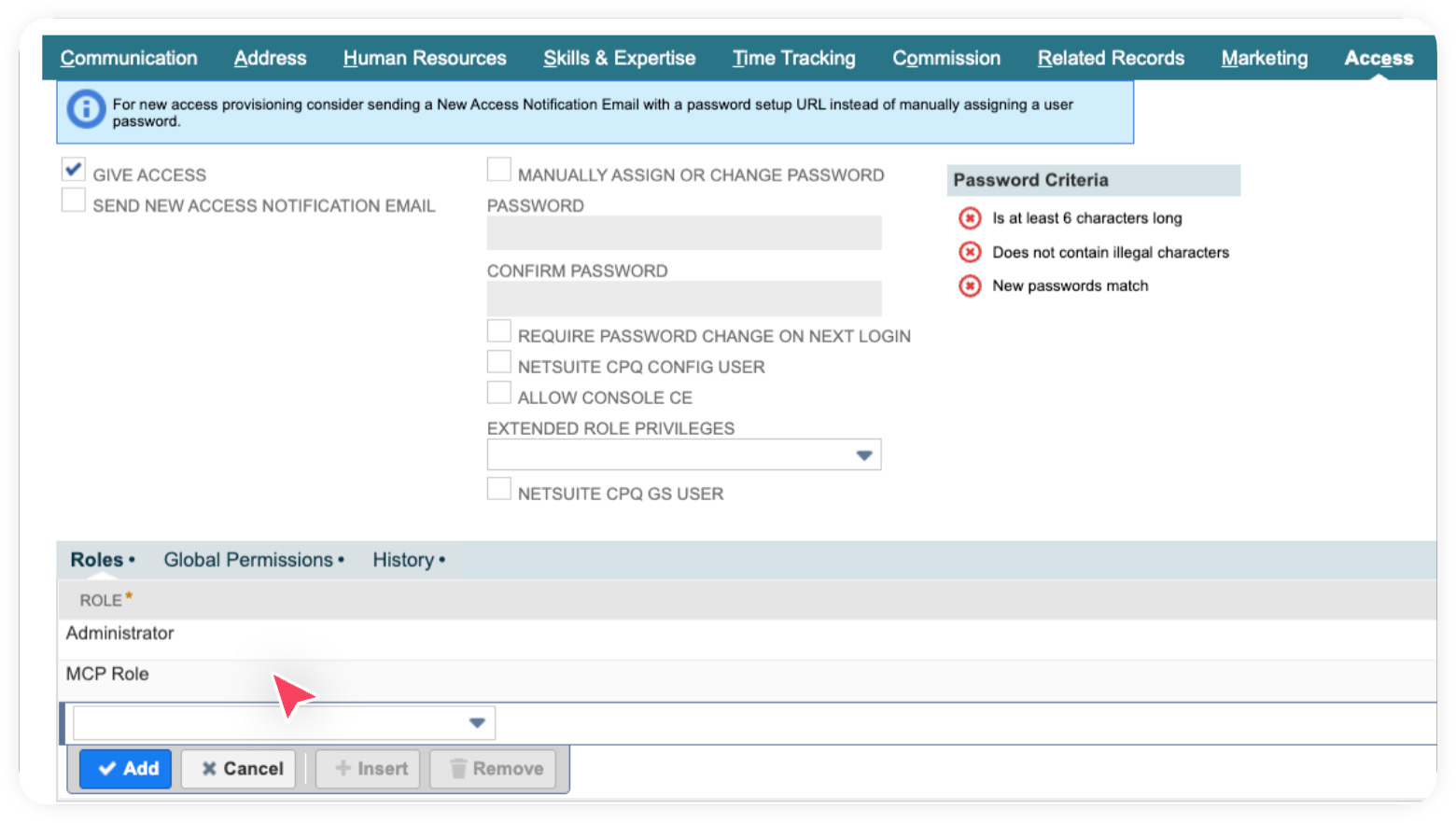 Creating a custom role in NetSuite