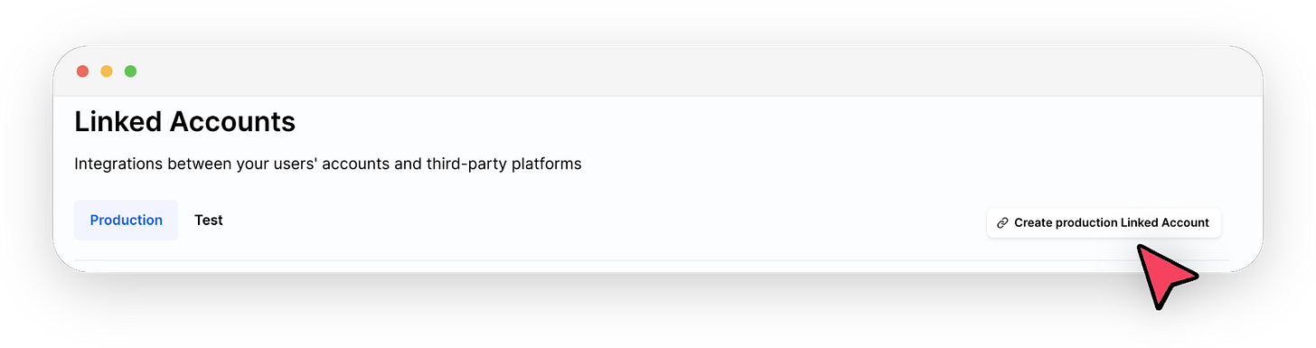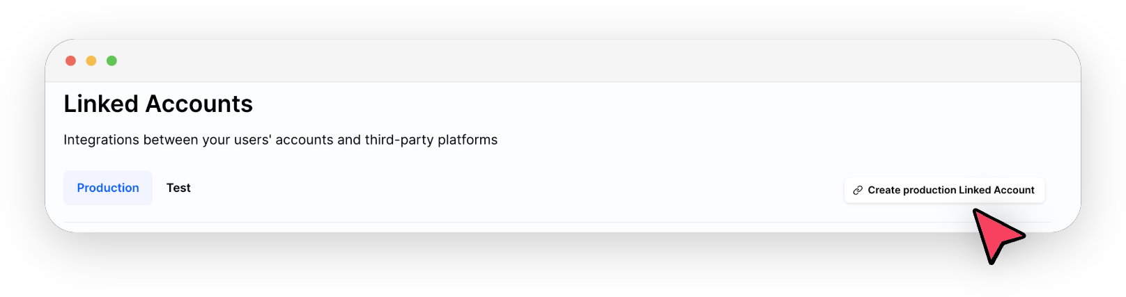 Merge calls any connections between itself and third party applications (like NetSuite) a Linked Account. Go here and click on “Create production Linked Account”