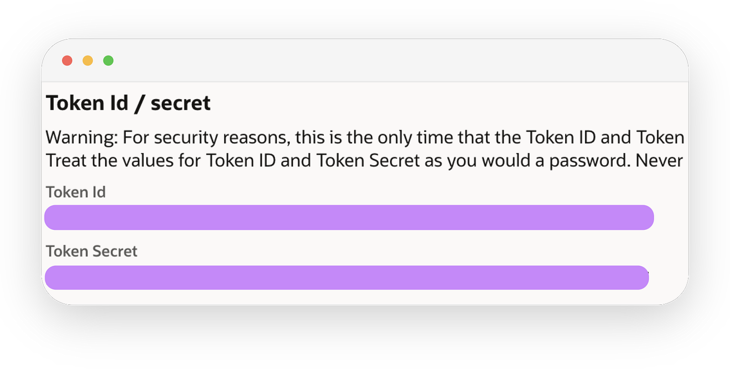And when you save that, you’ll get a Token ID and Token Secret. Write these down.